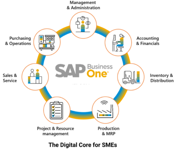 SAP Business One is a solution for mid-sized and small, fast-growing businesses to manage their business processes ranging from finance, sales, procurement, project management, purchasing & operations, inventory & distribution, manufacturing and others.